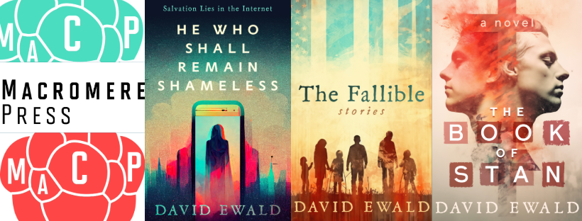 For three books now, James has created a uniformity in design that’s earned praise from readers who’ve commented on the covers of He Who Shall Remain Shameless, The Fallible: Stories, and the forthcoming The Book of Stan. I plan to stick with this designer for all future books, and if you’re in the market for a cover designer, I can’t recommend James highly enough.
