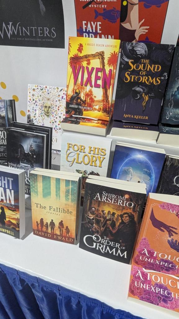 I took part in the Independent Local Authors’ Day at Bookish Modesto on Saturday, November 2nd. Patrons could find me in an alcove toward the front of the store next to the Horror section. Spoke, sold, signed. By the end of the two hours, only one copy of one book remained.