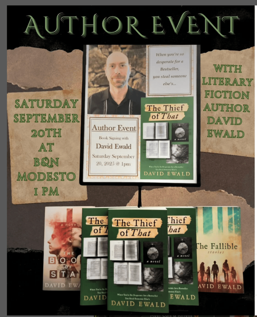 On September 20th, I was at the Barnes & Noble in Modesto on McHenry Ave for an author signing of my new novel, The Thief of THAT. Thanks to everyone who purchased a copy! Archived event details here.